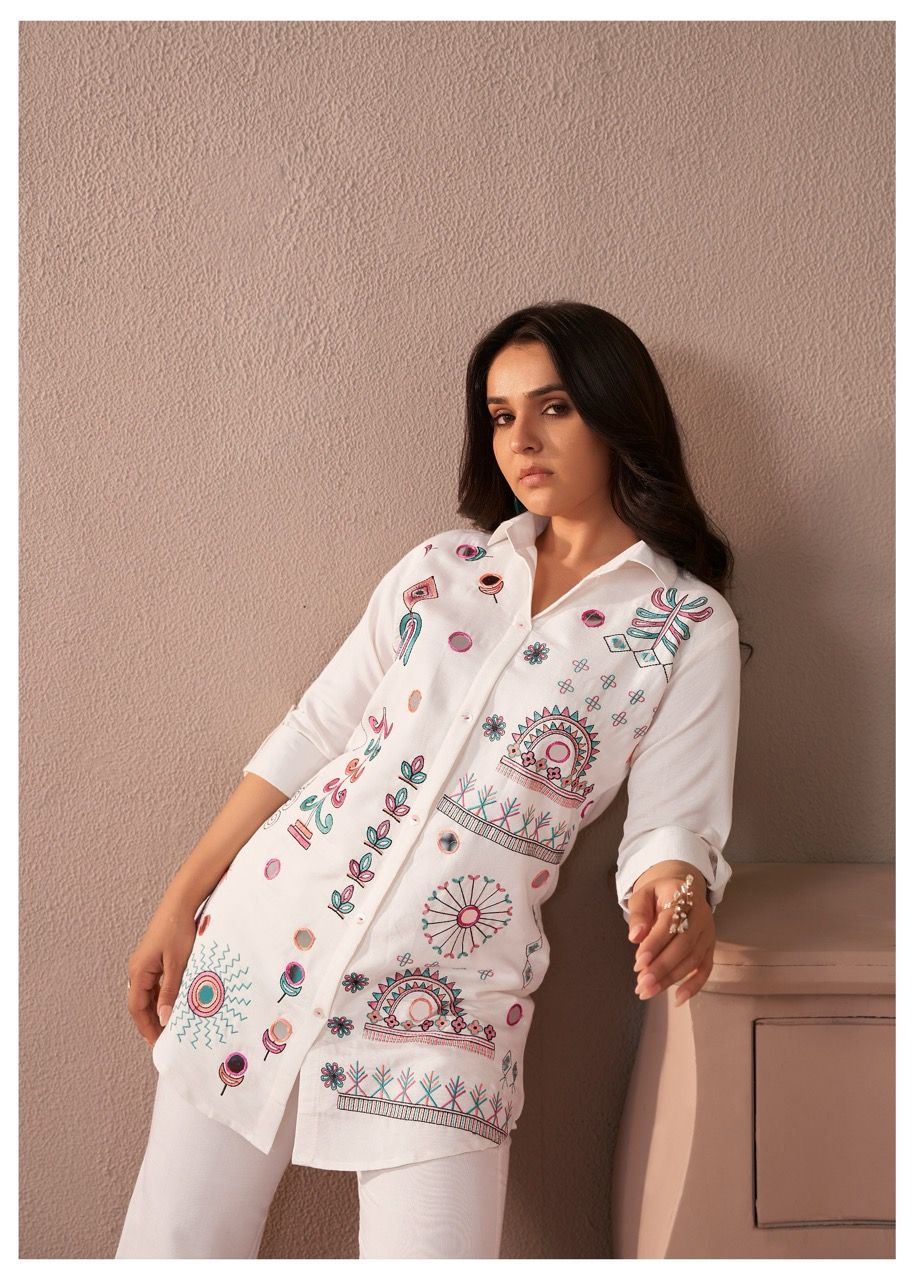 Aadviik Fashions Blue and White Printed Cotton Kurti