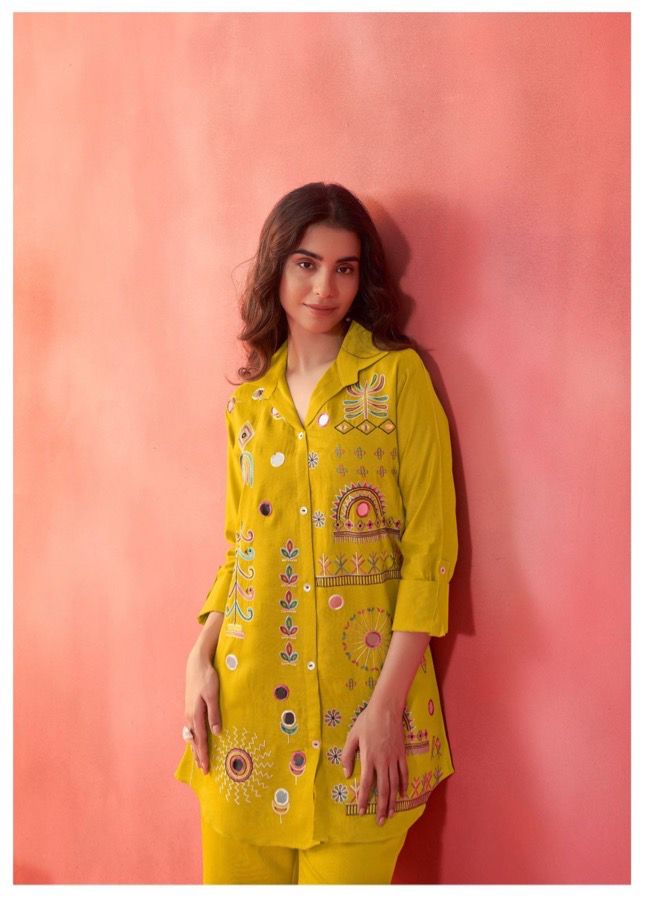 Mustard Yellow Cotton Silk Top with Kalamkari Hand-Painted Pants